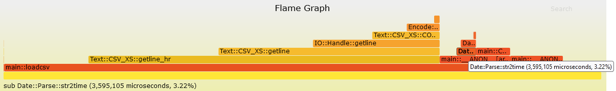 Holy cow! It makes sense as the source file has almost two million records, and I am parsing the date on every record. Who would have thought simple date parsing could take up so much time? I don’t know what I can do to make date parsing more efficient, but I did realize that I only need the date in some limited cases, so I changed the code to only do the date parsing at the time I actually need to compare timestamps, Changing this to lazy evaluation, bringing me into better alignment with the three virtues. The result:
